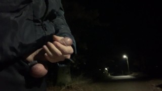 Nackt im öffentlichen Wald spazieren gehen und abspritzen