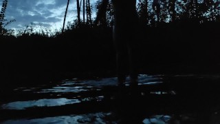 Fast erwischt, als er nackt im Wald spazieren ging