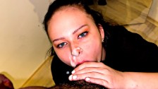 Schlampiger Blowjob in der Küche, Gesichtsbesamung