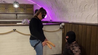 Herrin trainiert Sissy, Strapon 40cm