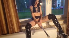 Hure fickt sich mit Baseballschläger am Fenster für die...